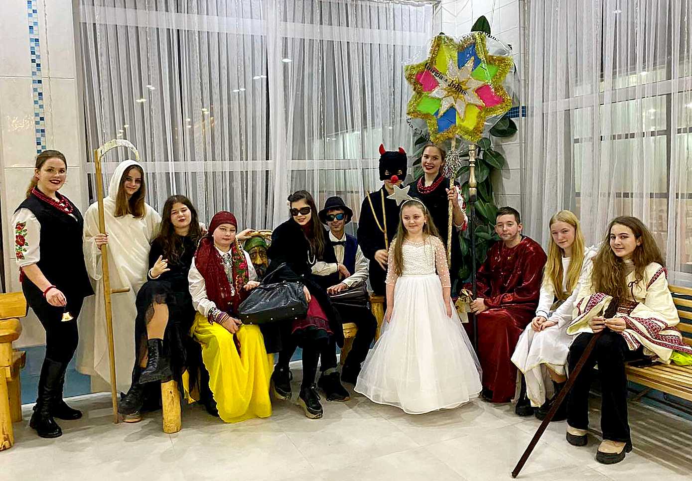 6, 7, та 8 січня вихованці гуртка «Сценічна мова» (керівник Галина Бучкович) Будинку учнівської творчості м.Трускавець із вертепом, Вифлеємською зіркою зранку до пізнього вечора колядували, віншували в Трускавці і Станилі. Завітали в санаторій «Джерело», де уже другий рік повномасштабної війни проживають люди зі сходу та півдня України. Зі сльозами на очах дорослі і діти заслуховувалися у різдвяні колядки та віншування. Кожен з них, мабуть, думав про рідний дім… Дітям вдалося достукатися до сердець людей.